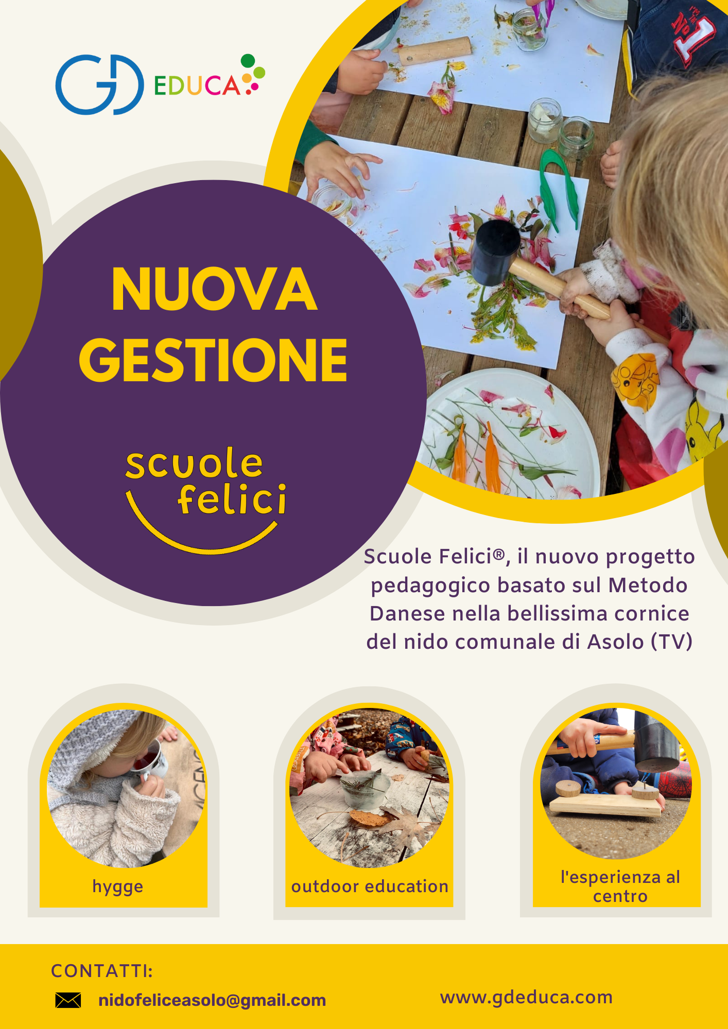 Si informa che la gestione dell'Asilo Nido Comunale di Asolo è stata affidata a GD Educa Cooperativa Sociale, che fornirà ai genitori i propri servizi educativi nel periodo 01/09/2024 - 31/08/2029.