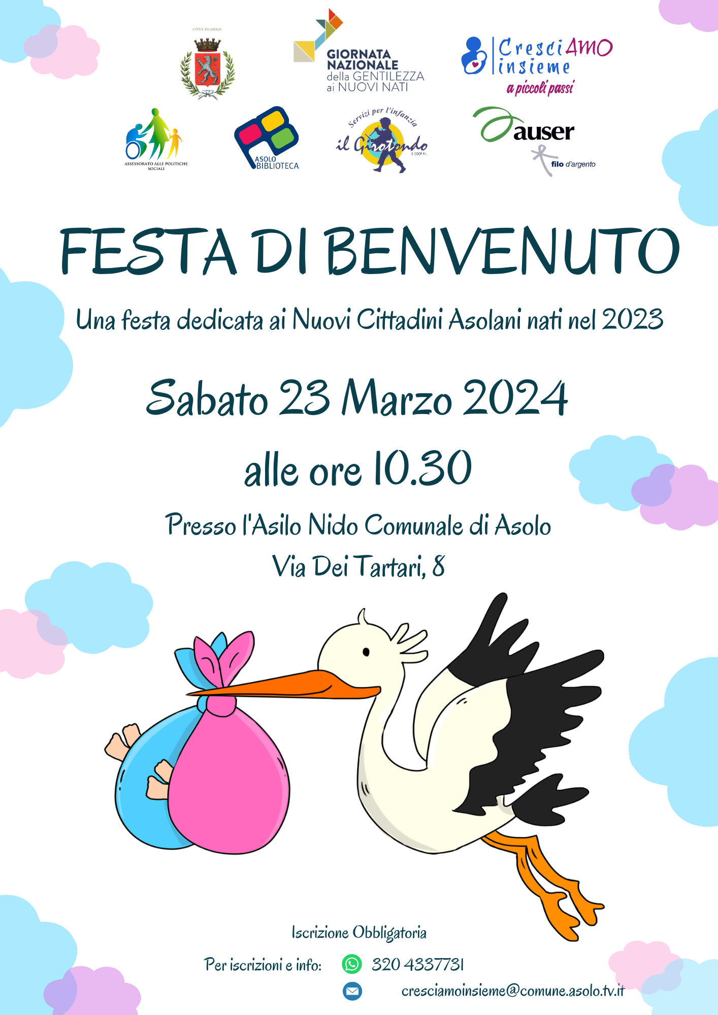 In occasione della Giornata Nazionale della Gentilezza ai Nuovi Nati la Città di Asolo accoglierà i bambini nati nel 2023 con una cerimonia davvero speciale!