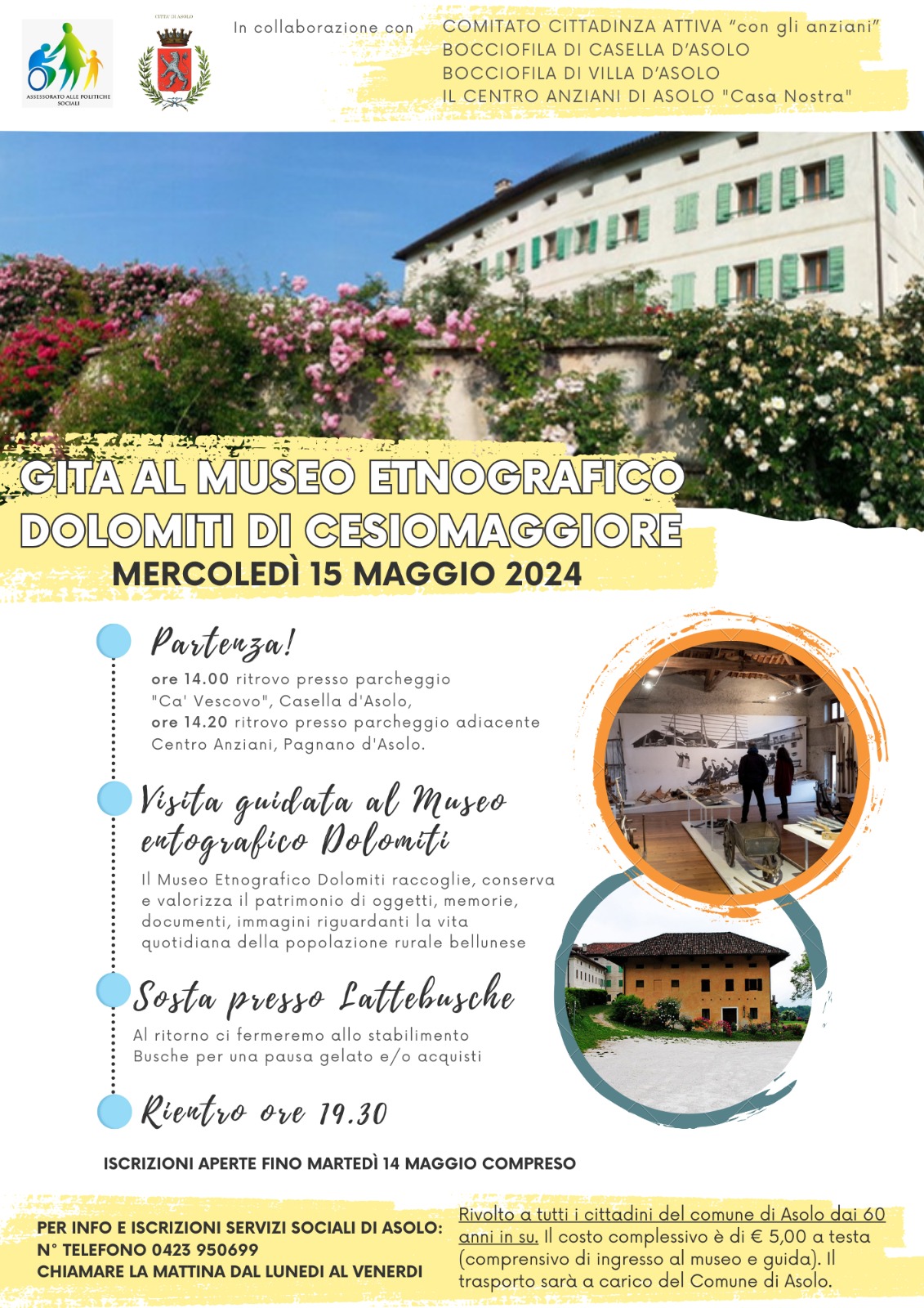 Il costo è di €5,00 a persona, comprensivo di trasporto e visita guidata al museo.