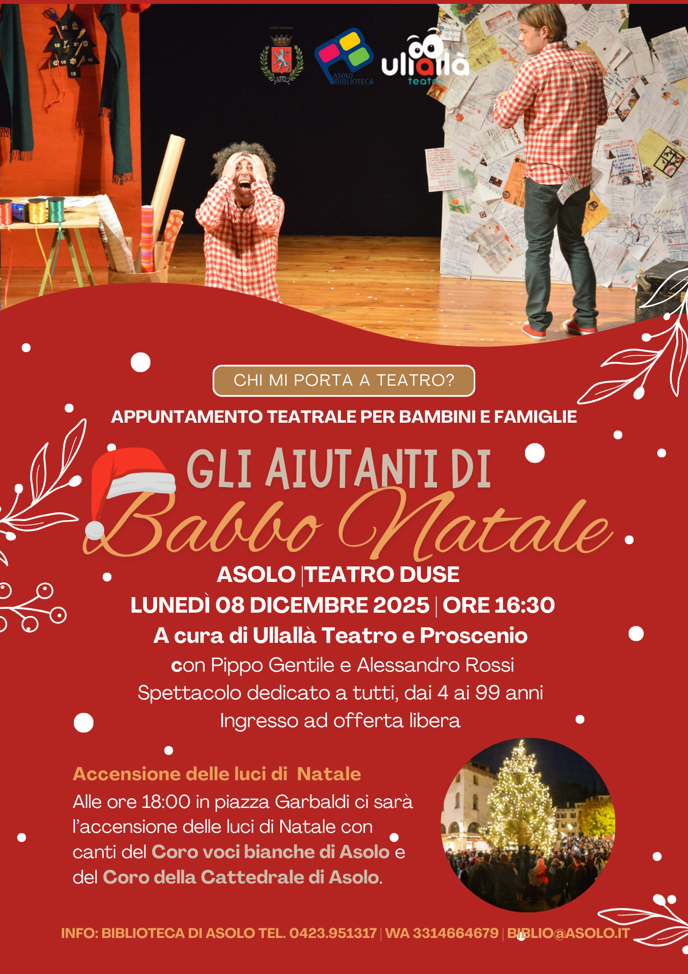 A seguire alle ore 18.00 accensione dell' Albero di Natale con canti del Coro Voci Bianche di Asolo e del Coro della Cattedrale di Asolo e liete sorprese!