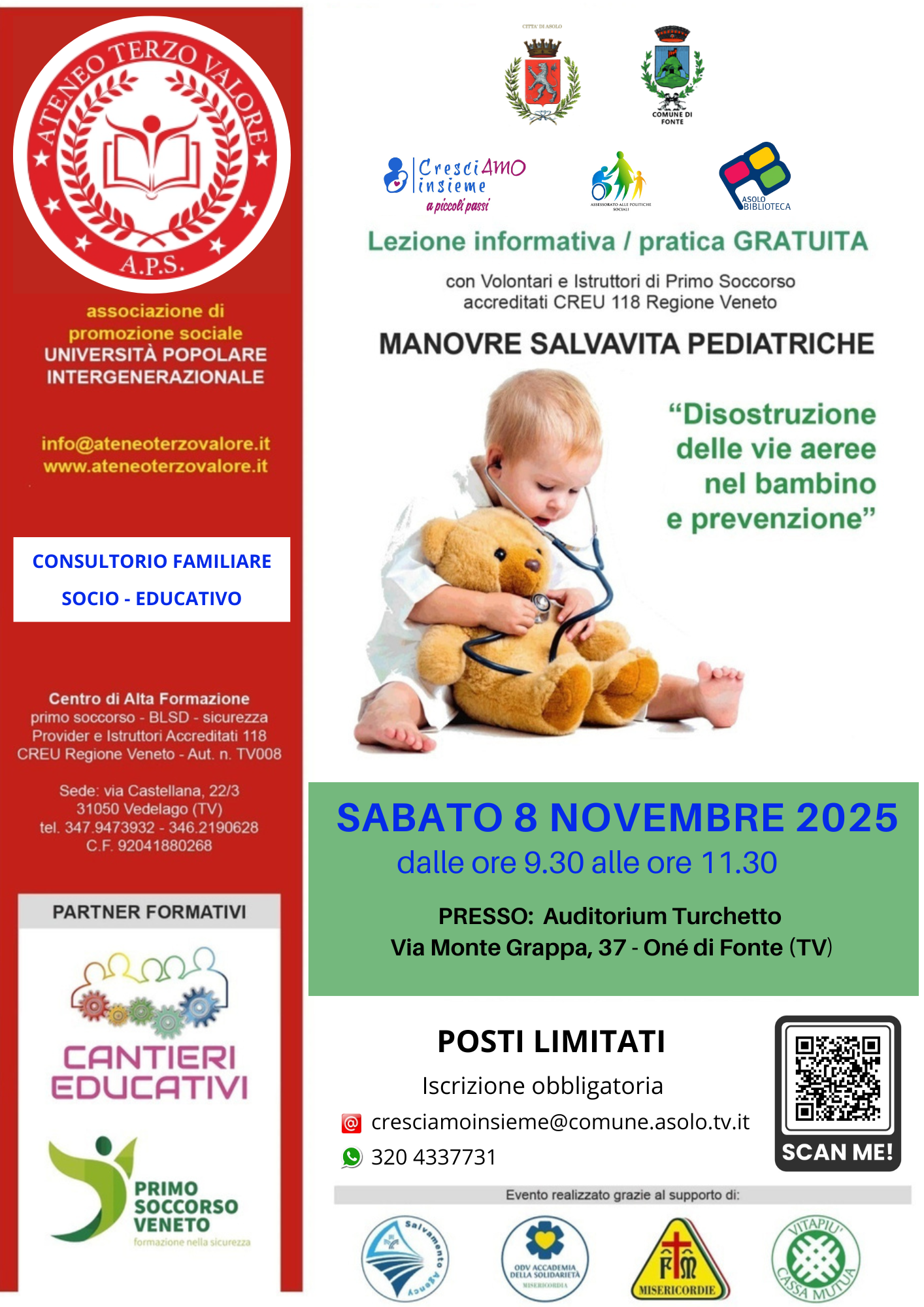 Il corso organizzato dai Comuni di Asolo e Fonte è inserito all'interno del progetto CresciAMO Insieme a piccoli passi , che ha come obiettivo quello di accompagnare i genitori (e non solo) nel percorso di crescita dei propri figli. L'incontro è aperto a tutti: genitori, nonni , zii, baby sitter , insegnanti ecc.