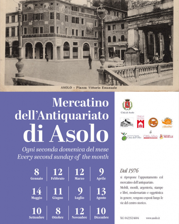 A Luglio ed Agosto, per evitare la calura estiva, il mercatino dell'antiquariato viene spostato dal pomeriggio alla tarda serata e vengono organizzate dal Comune di Asolo degli eventi collaterali di intrattenimento.